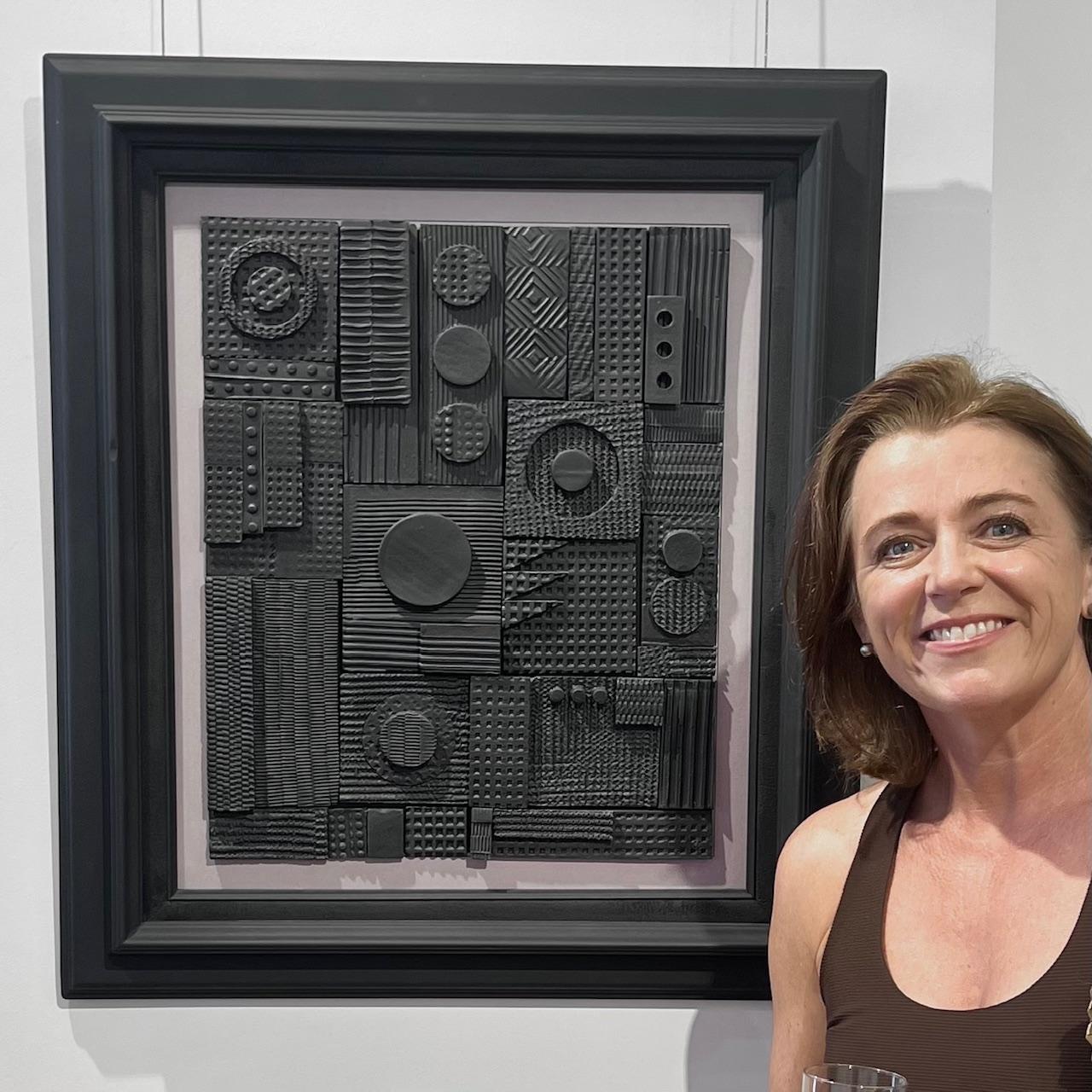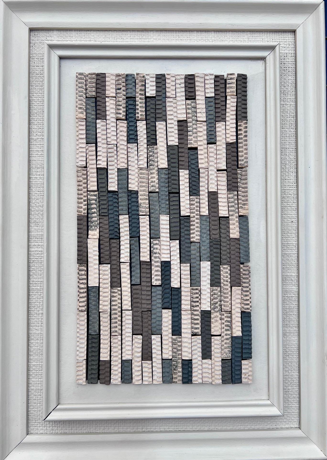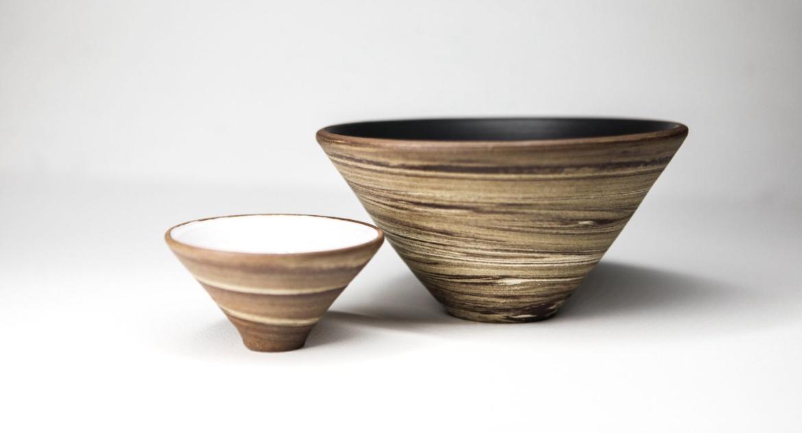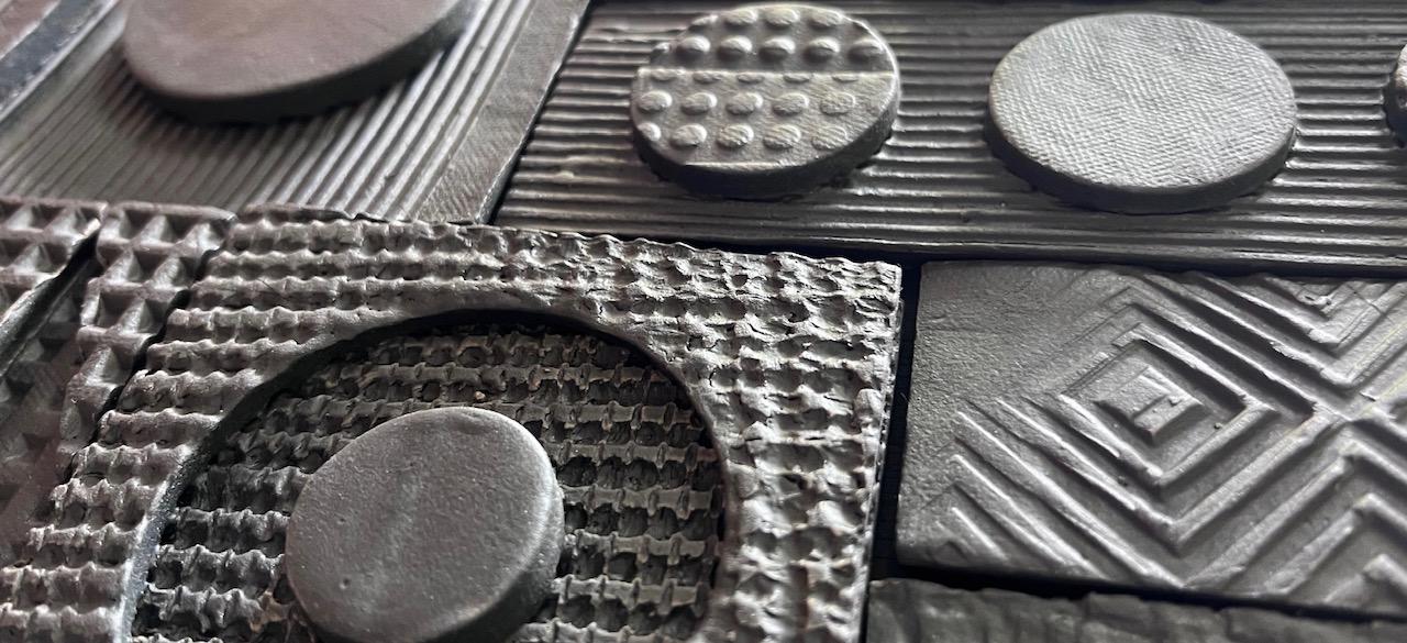 Elle crée de belles pièces de poterie sur mesure faites avec de l’argile qu’elle ramasse sur la plage à marée basse. L’argile est ensuite traitée pour créer différents types de céramiques allant des bols aux panneaux graphiques. Les panneaux, son amour, sont composés de plus petits carreaux texturés individuels pour faire une grande pièce. Son style est minimaliste et simple avec des lignes épurées, produisant de l’art abstrait intemporel.