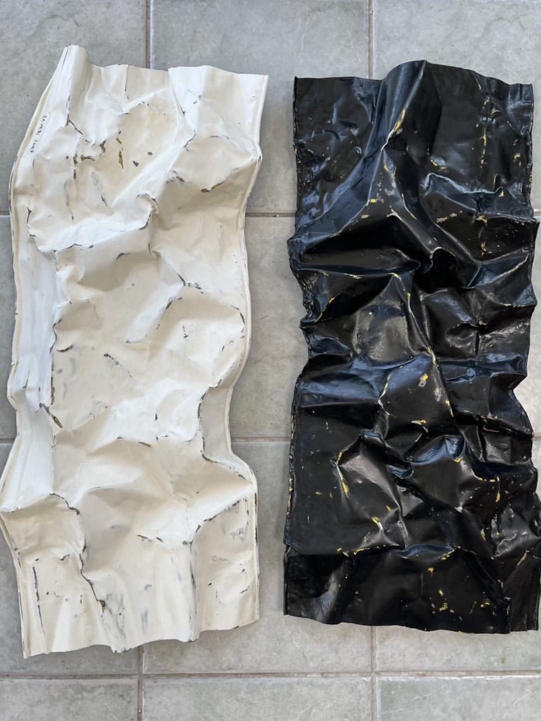 « Les sculptures de Gérard Roveri sont des totems, des boucliers, des formes végétales et des pirogues. Les couleurs primaires claquent et s’effacent parfois devant des tonalités très minérales. Le métal est froissé, plié comme un origami ou perforé, façonné dans son épaisseur à la manière de scarifications. Le bois des totems, bien que coloré, semble façonné par les ans. », Sylvie Tolila, journaliste